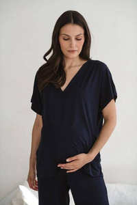 Moon bambusowa bluzka od piżamy ciążowej do karmienia krótki rękaw Milk&Love ciemny błękit
