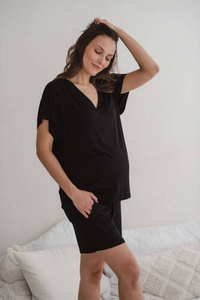 Moon bambusowa bluzka od piżamy ciążowej do karmienia krótki rękaw Milk&Love herbaciana róża