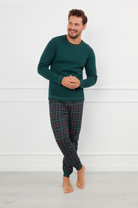 Tess Дамска пижама с дълъг ръкав и дълъг панталон Италианска мода - зелено/принт