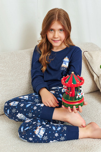 977/189 978/189 Памучна пижама за момичета Snowy Day Cornette с дълъг ръкав | Топла и удобна