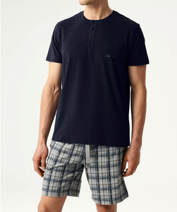 Rajmund Мъжка пижама с къс ръкав, къси панталони Италианска мода - морско синьо/принт