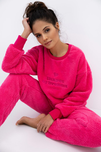 Кафява пижама Liliana Sorbetto – топъл полар с кариран мотив и бродерия