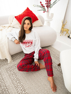 Makala Дамска пижама с дълъг ръкав и дълъг панталон Италианска мода - червено/принт