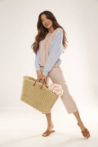 Индонезия Дамска пижама 3/4 ръкав, 3/4 панталон Италианска мода - бежово/принт