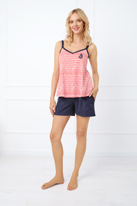 Flota Дамска пижама с вталена кройка, къси панталони Италианска мода - принт червено/синьо