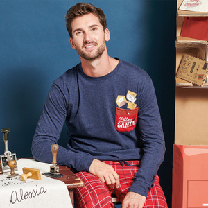 Кафява пижама Liliana Sorbetto – топъл полар с кариран мотив и бродерия