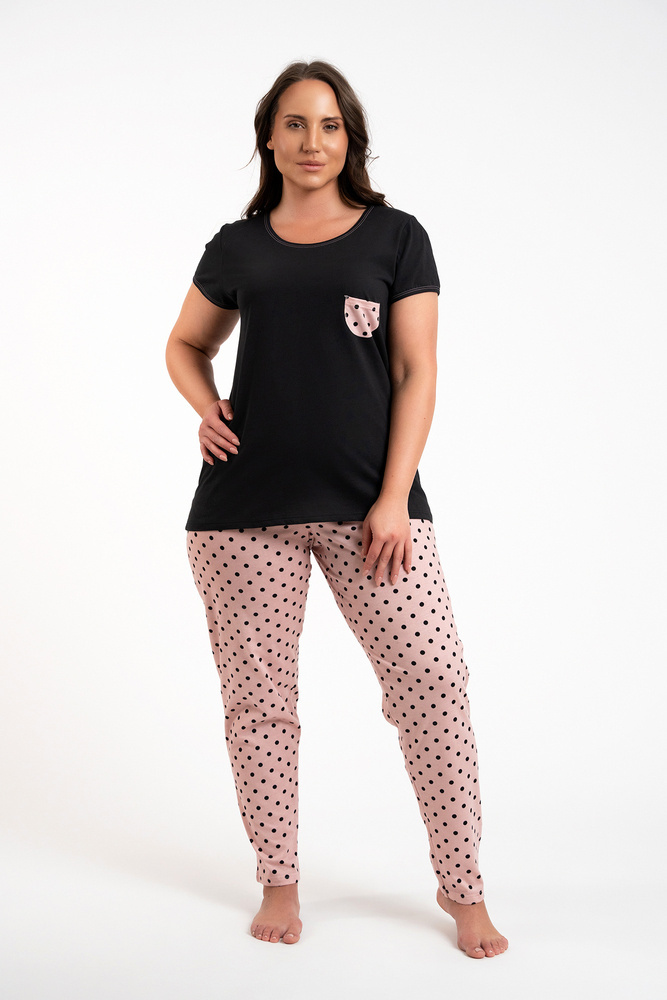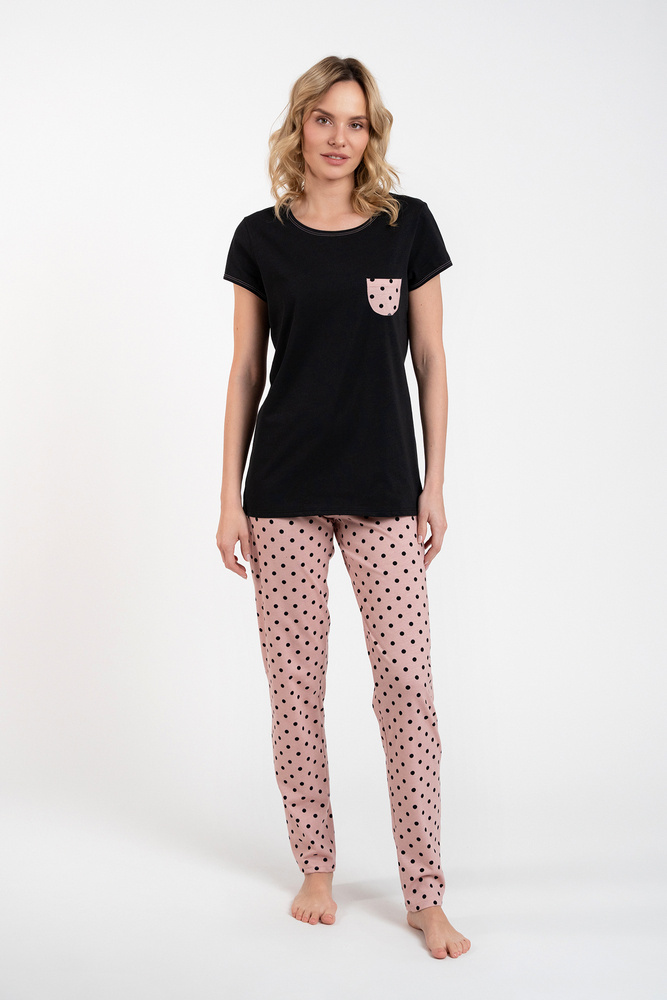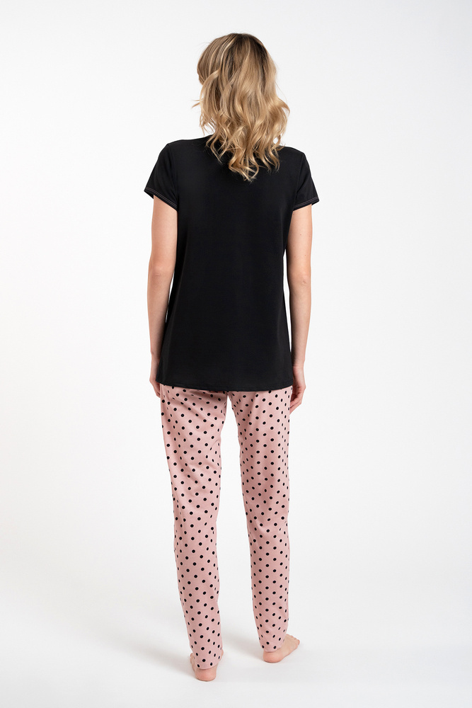 Buscato Дамска пижама с къс ръкав и дълъг панталон Италианска мода черно/принт