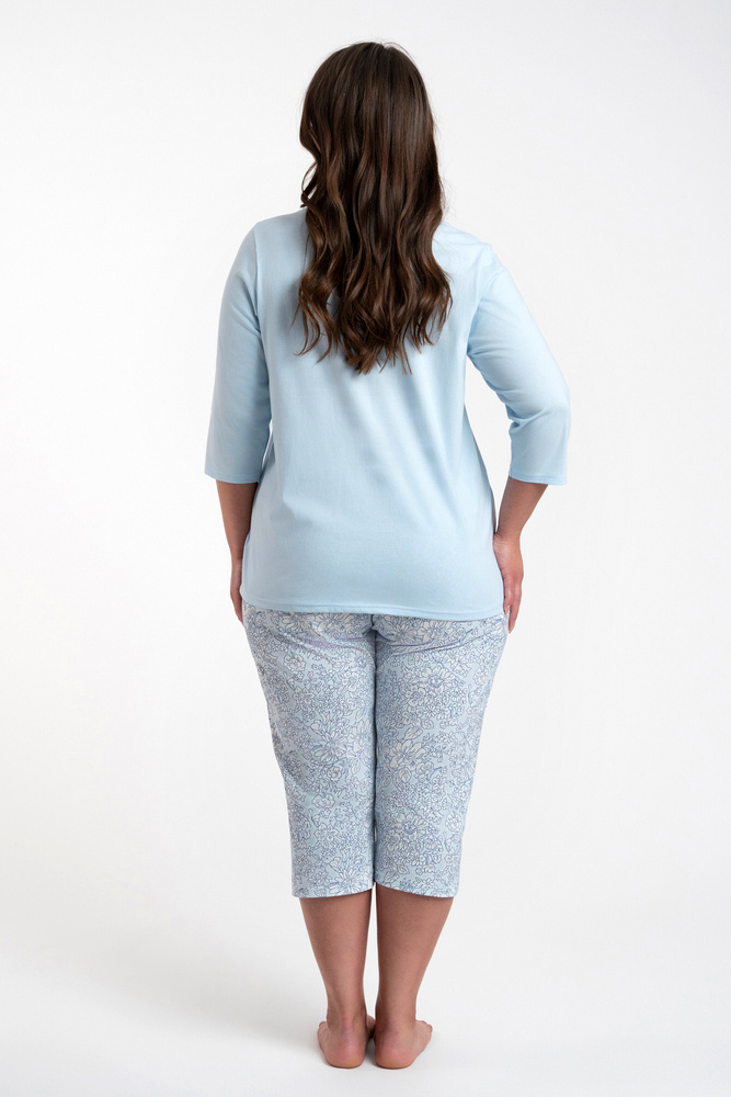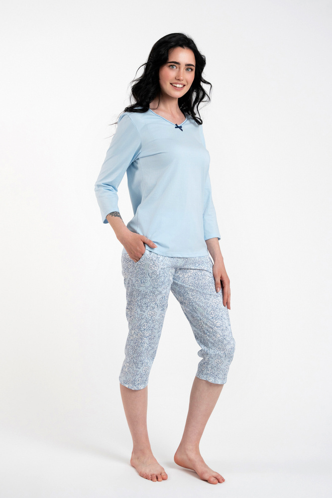 Salli Дамска пижама с 3/4 ръкав и 3/4 панталон Италианска мода - синьо/принт