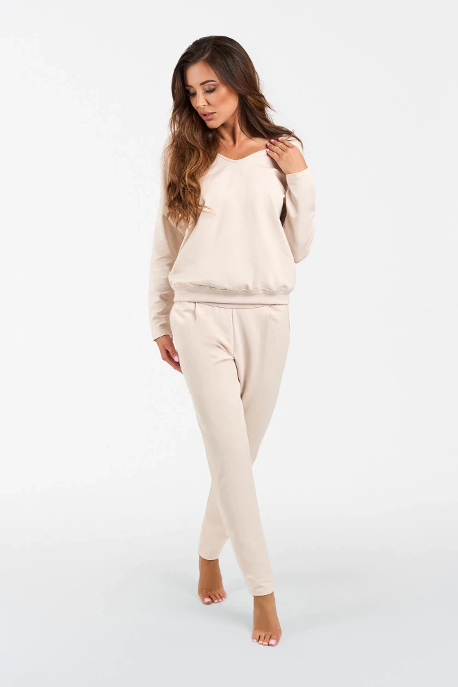 Karina Дамски комплект с дълъг ръкав и панталон Италианска мода - бежов