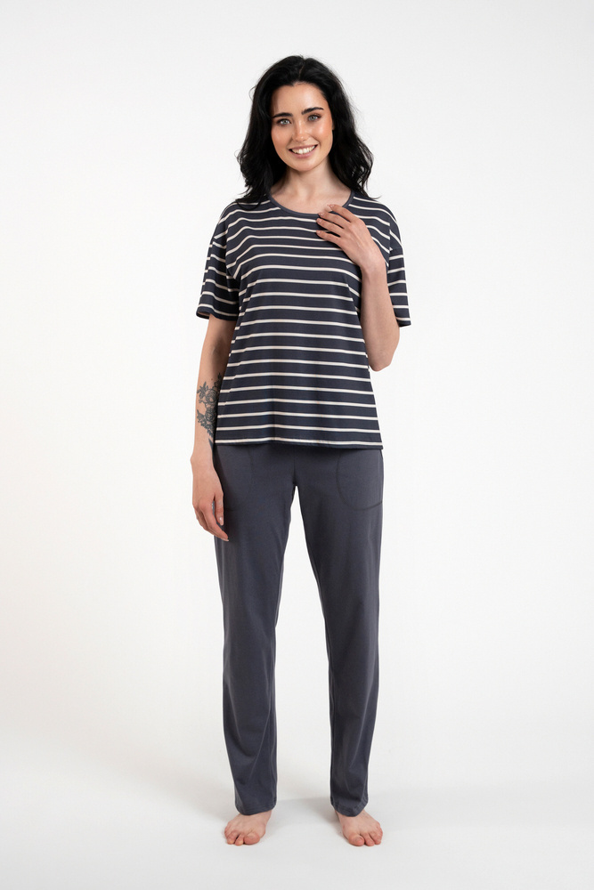 Betty Дамска пижама с къс ръкав и дълъг панталон Италианска мода - графит/графит