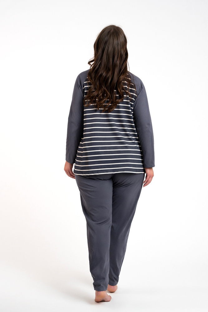 Oda Дамска пижама с дълъг ръкав и дълъг панталон Италианска мода - графит/графит