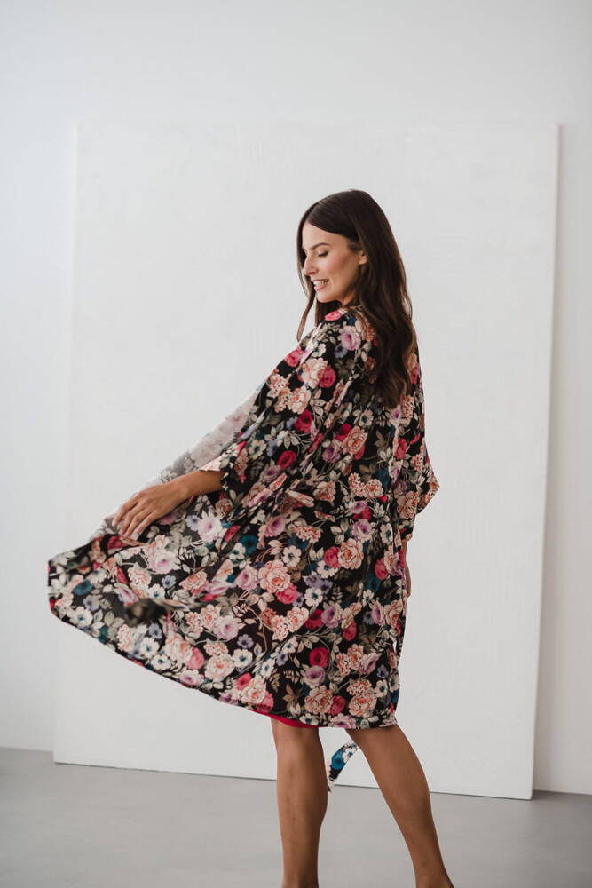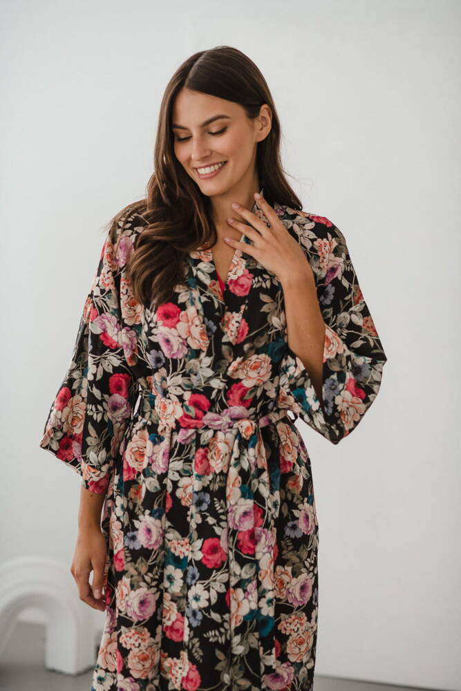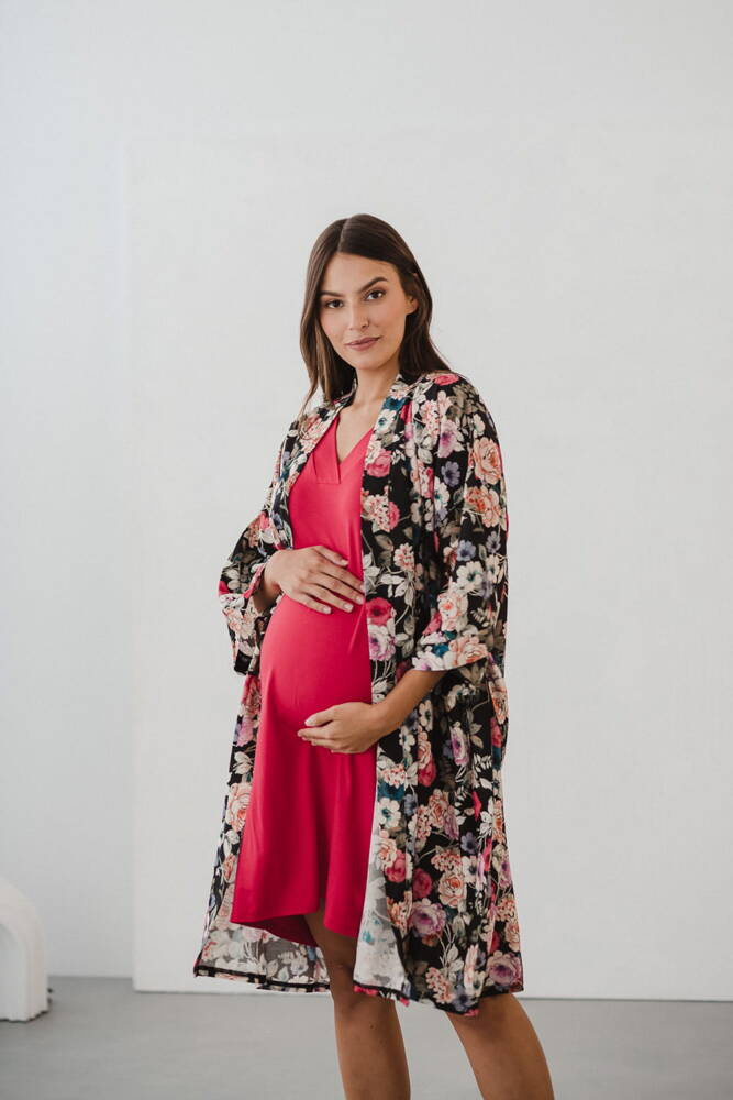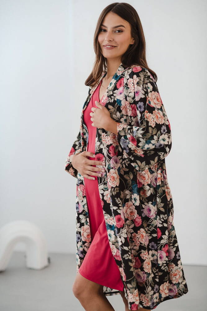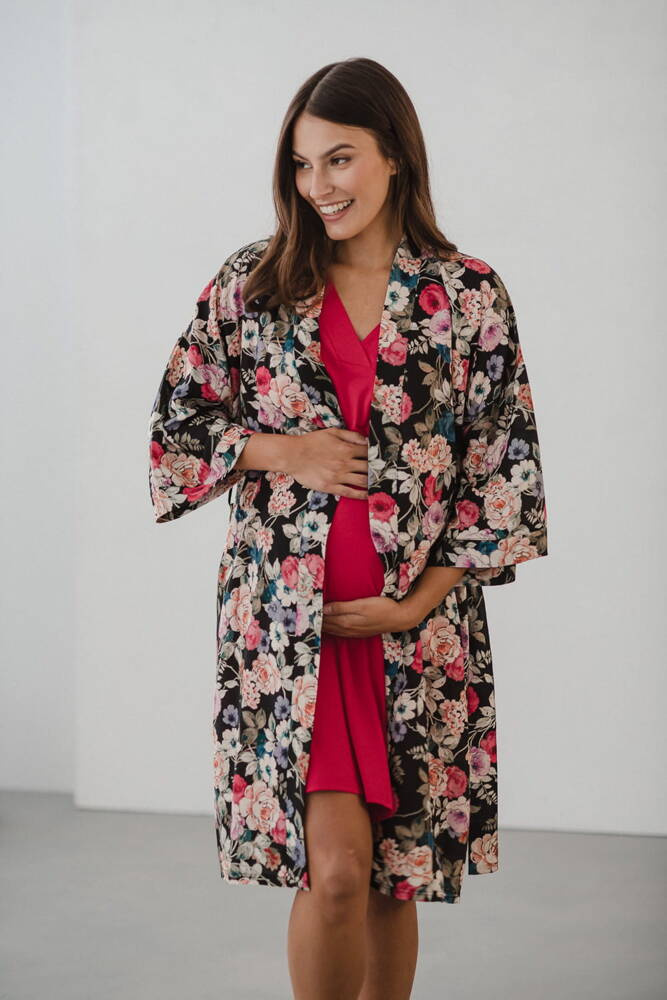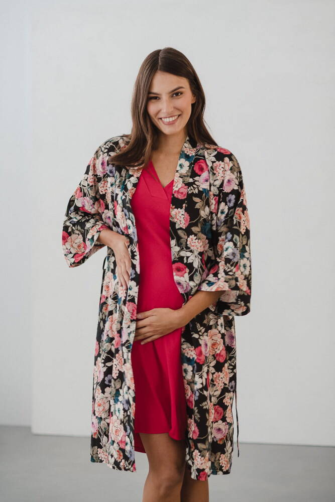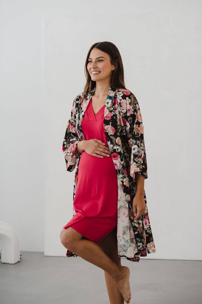 Szlafrok został zaprojektowany z myślą o mamach, dlatego jest nieco dłuższy, abyś spokojnie okryła nim ciążowy brzuszek. Po porodzie bez skrępowania b będziesz mogła spacerować po szpitalnym korytarzu lub na leżąco nakarmiła maluszka w połogu. Posiada kieszenie na niezbędne drobiazgi i pasek do regulowania szerokości.
