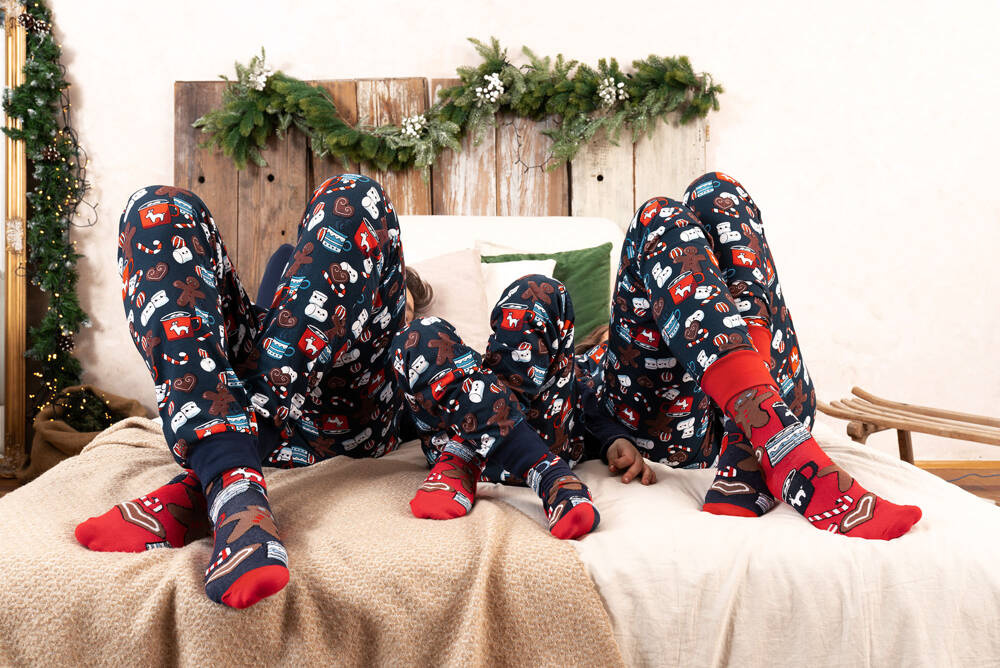 Не само за малките гастрономи - детски пижами в сладки бисквити! Тя несъмнено ще направи всички мечти сладки! Детската памучна пижама ще поддържа кожата приятна и дишаща, а правата кройка ще осигури комфорт и спокойствие дори на най-големите палавници. Детската пижама с дълъг ръкав и дълъг панталон има потник с кръгло деколте, а панталонът е с удобен оребрен подгъв на крачолите. Сладкият принт покрива целия панталон, докато потникът е украсен само в средата на. Детските пижами се предлагат в размери за деца от 2 до 14 години, в тъмносини и червени цветови тонове.