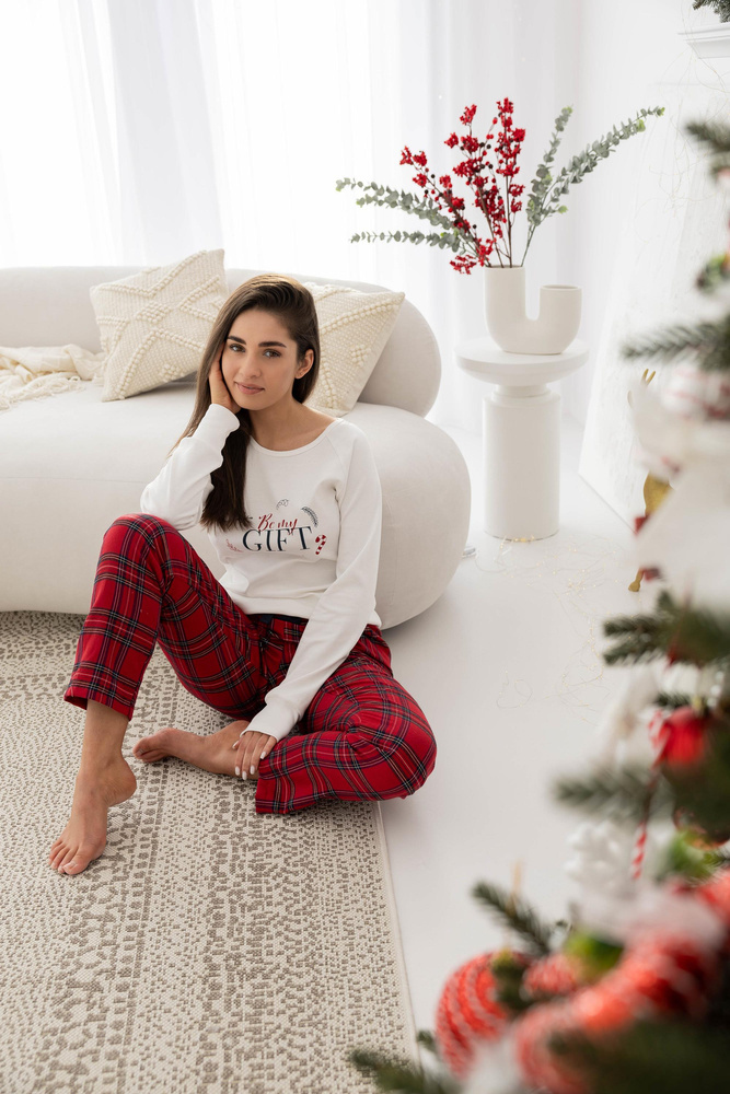 Дамска пижама, изработена от висококачествен памук. Тениска с дълъг ръкав и кръгло деколте.