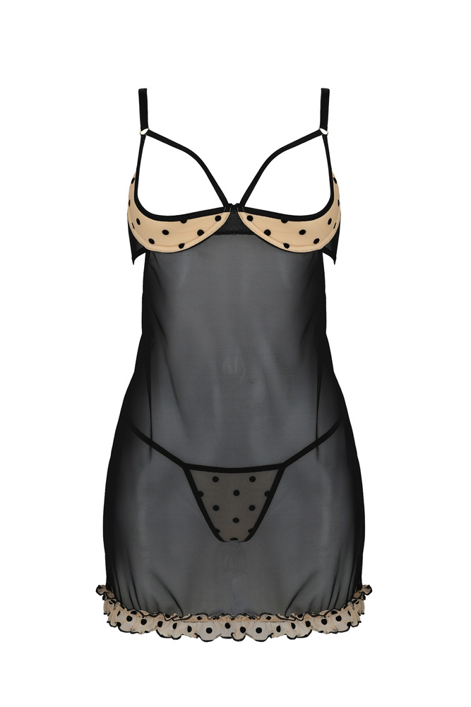 Zmysłowa koszulka Martina to propozycja marki Passion. Delikatny tiul, otuli twoje ciało a otwarte miseczki uniosą biust i frywolnie go wyeksponują. Komplet dostępny w dwóch wersjach kolorystycznych - czerni i beżu.
