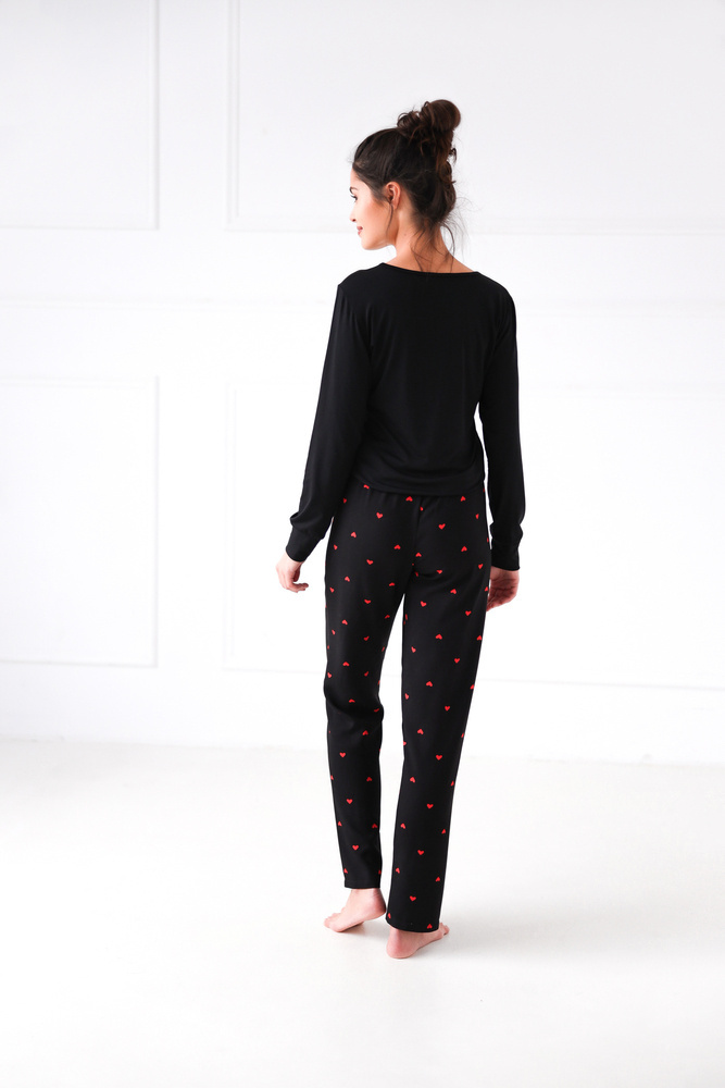 Дамска пижама, изработена от висококачествена вискоза. Тениска с дълъг ръкав, деколте с копчета