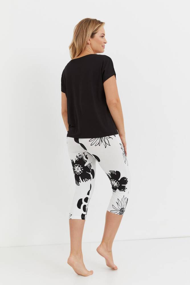 Пижама от две части на De lafense, изработена от висококачествена вискоза. Идеален за добър сън през нощта и чудесно начало на деня с първото сутрешно кафе. Тениска с кратък ръкав. В комплект с 3/4 панталон.