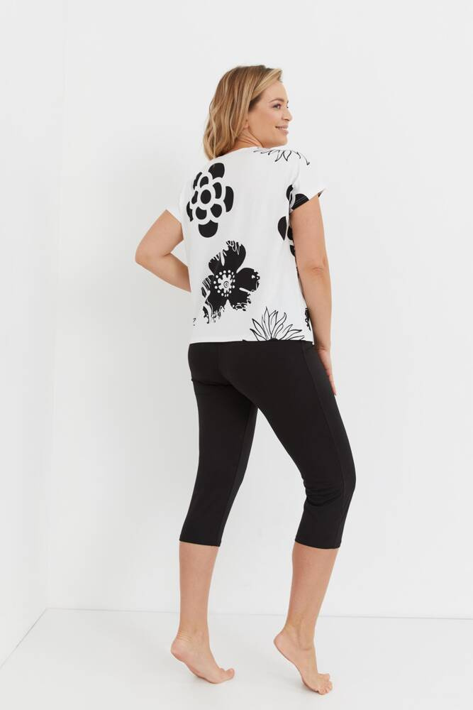 Пижама от две части на De lafense, изработена от висококачествена вискоза. Идеален за добър сън през нощта и чудесно начало на деня с първото сутрешно кафе. Тениска с кратък ръкав. В комплект с 3/4 панталон.