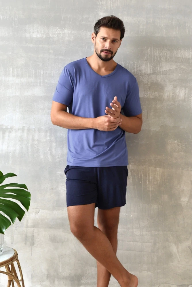 Dallas Мъжка пижама с къс ръкав, къси панталони Италианска мода - синьо