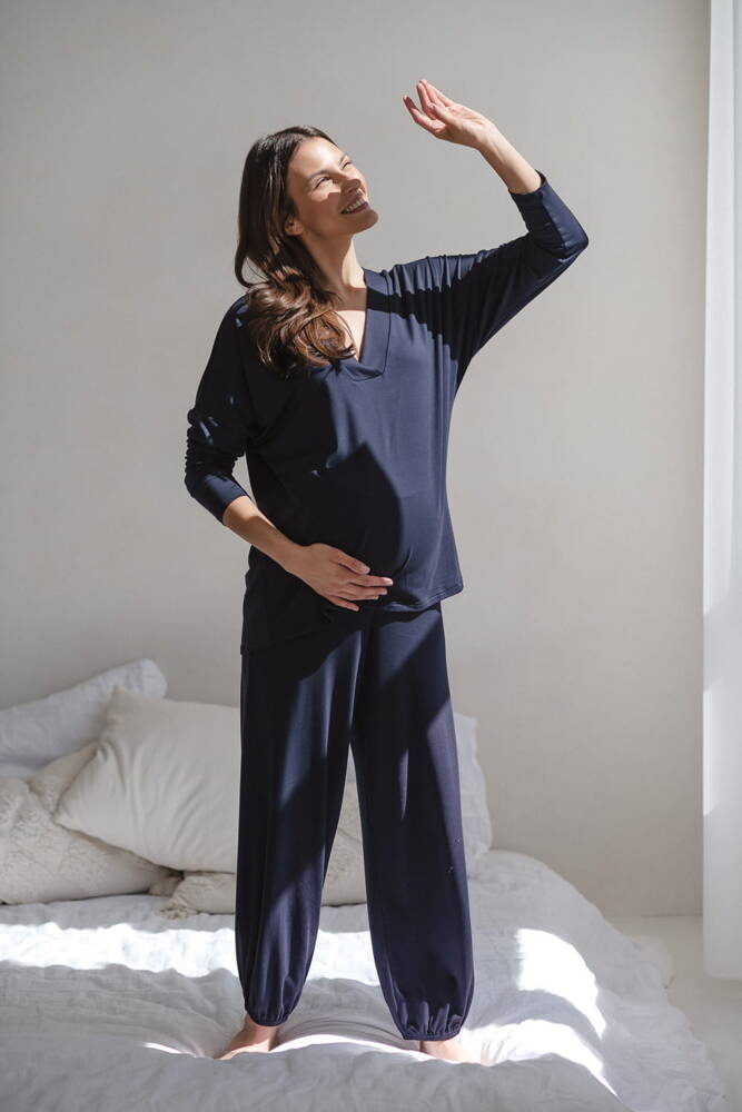 Moon bambusowa bluzka od piżamy ciążowej do karmienia długi rękaw Milk&Love granatowy