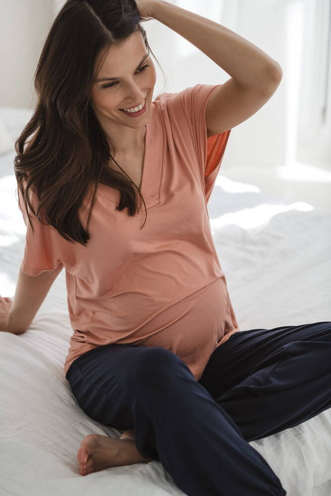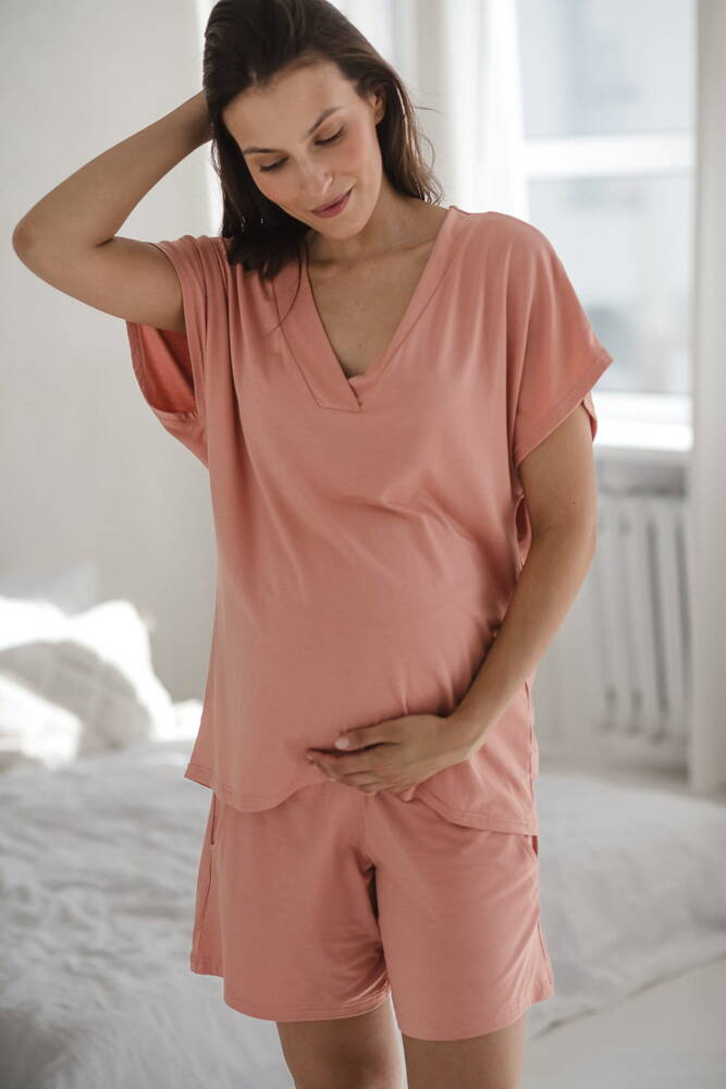 Moon bambusowa bluzka od piżamy ciążowej do karmienia krótki rękaw Milk&Love herbaciana róża