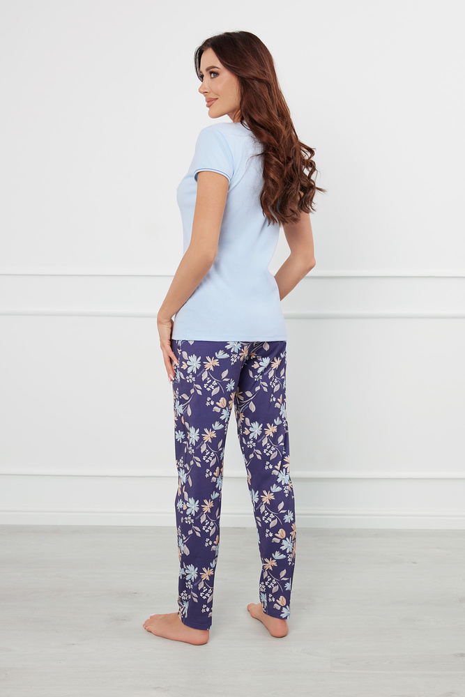 Pulia Дамска пижама с къс ръкав и дълъг панталон Италианска мода - синьо/печат