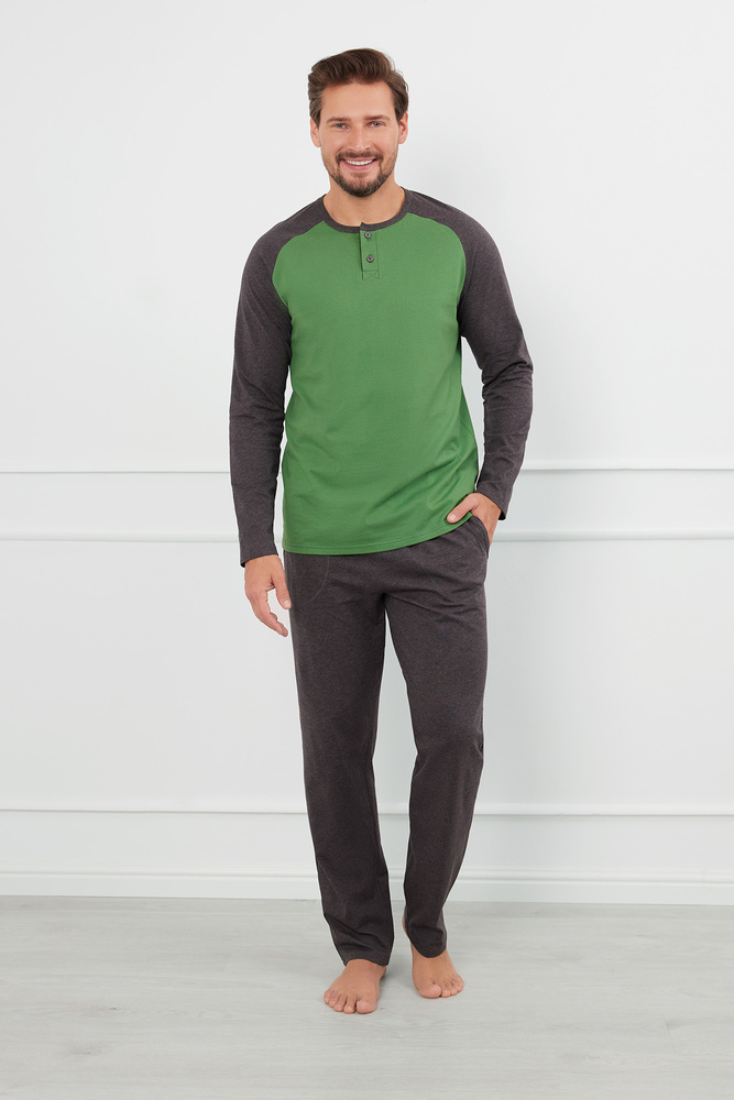 Alexander Мъжка пижама с дълъг ръкав и дълъг панталон Италианска мода - зелена/c.меланж