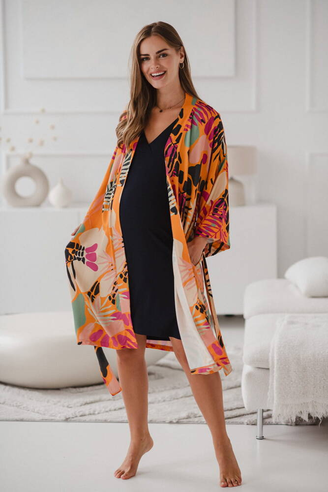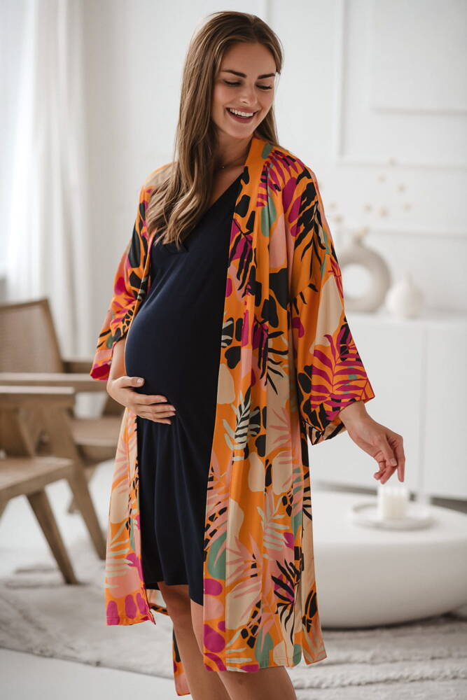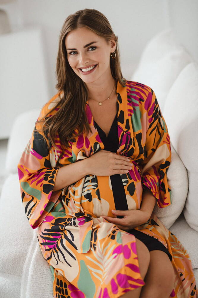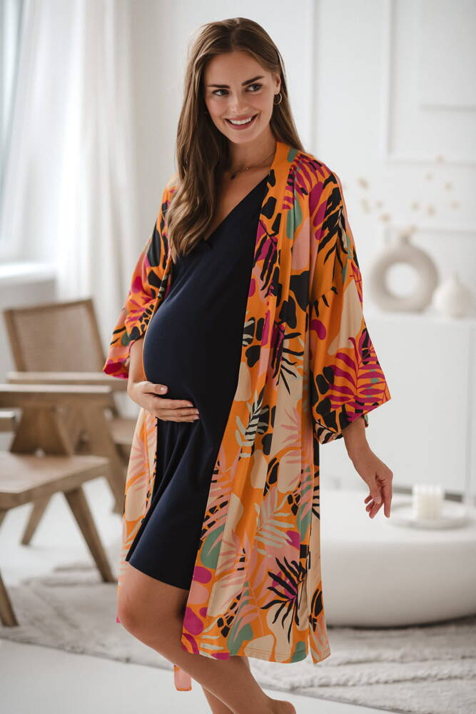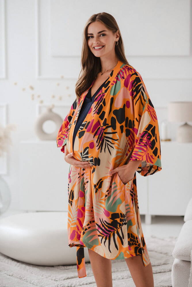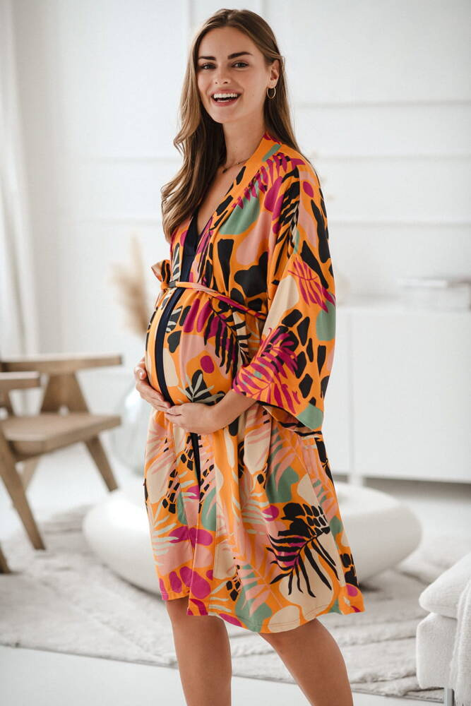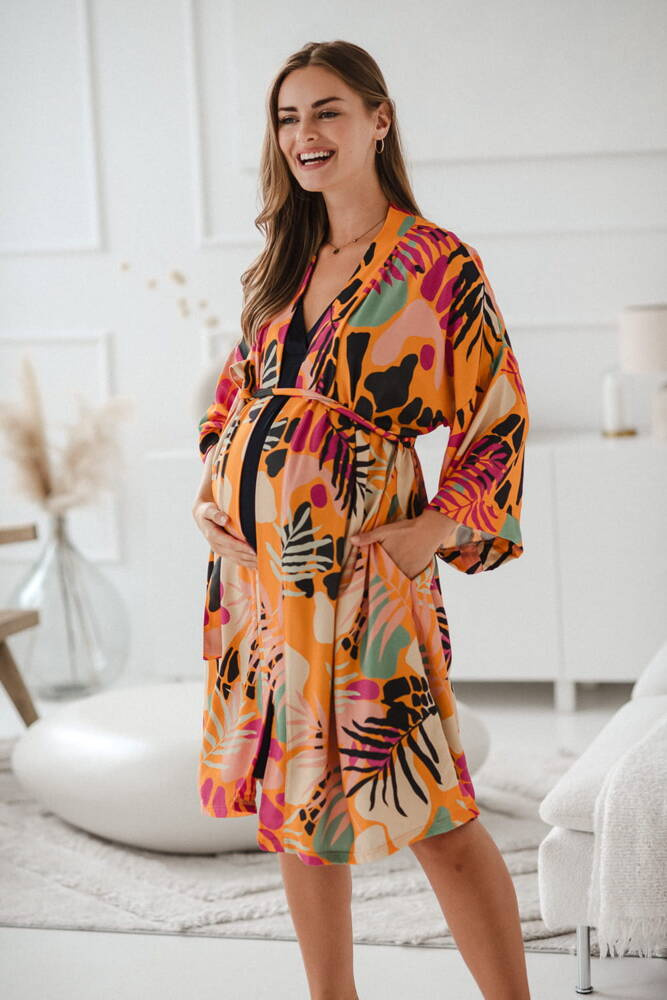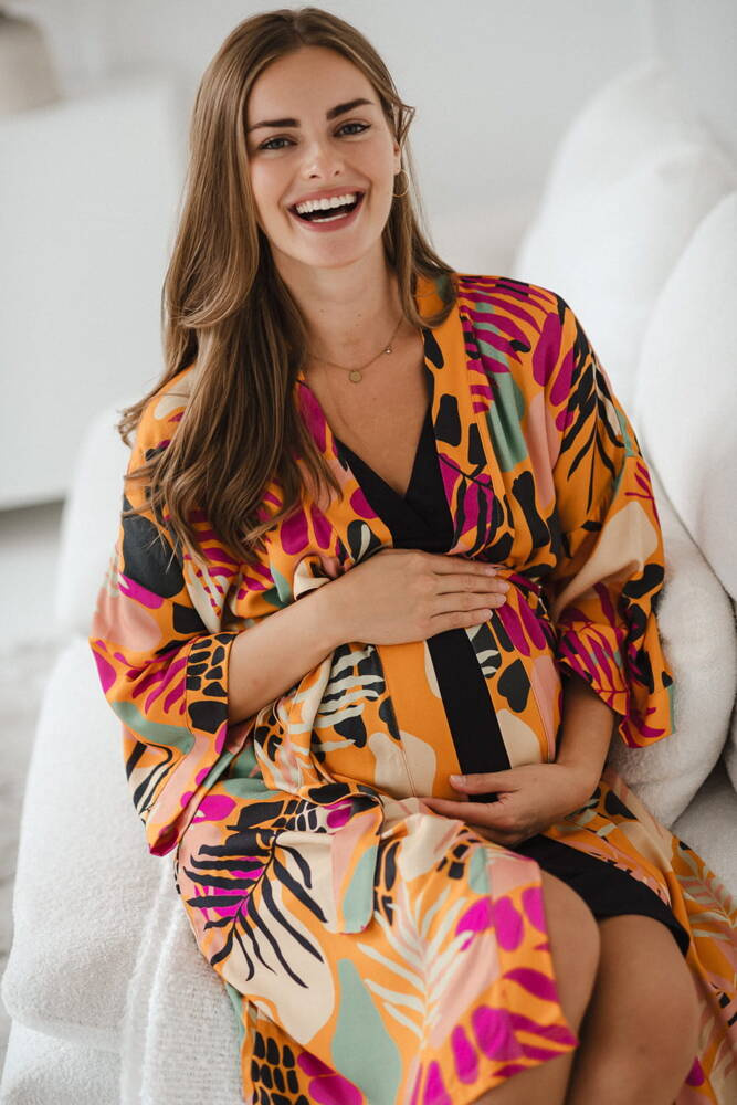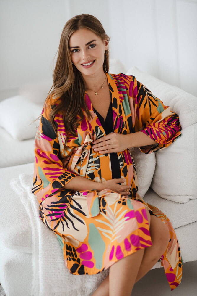 Tropical Orange szlafrok bambusowy ciążowy Milk&Love pomarańczowy