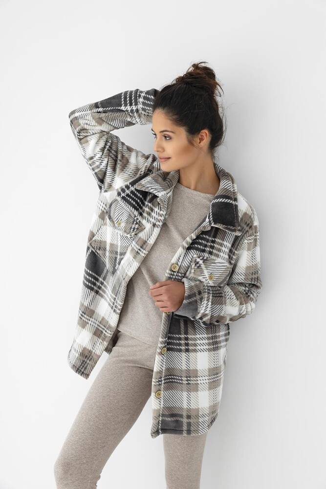 Удобна, топла дамска риза, изработена от мека, пухкава и мека плетена материя.