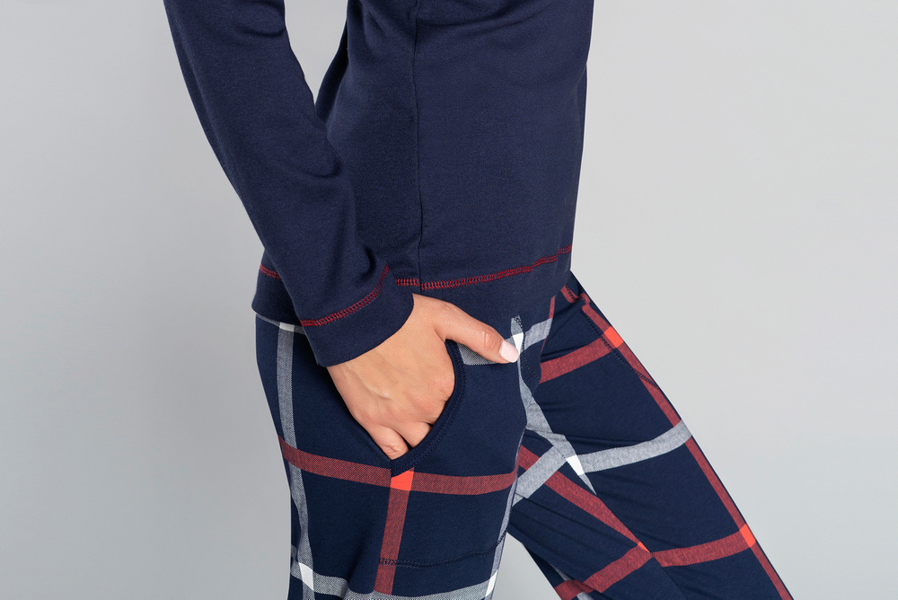 Карето е един от онези вечни десени, които са се появявали, появяват се и ще продължават да се появяват в различни форми през следващите сезони. Дамска пижама Izera е най-новото ни предложение в есенно-зимната колекция. Класическото морско синьо се съчетава чудесно с деликатни червени и бели карета. Удобната, леко вталена кройка и 100% висококачественият памук ще ви обгърнат приятно през хладните вечери и нощи, осигурявайки изключителен комфорт при излежаване.