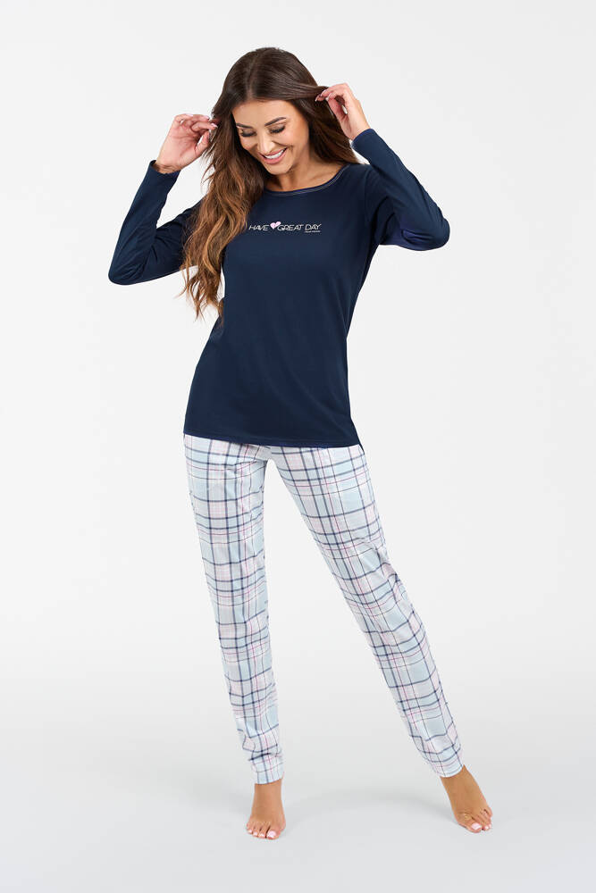 Glamour Дамска пижама с дълъг ръкав и дълъг панталон Италианска мода - морско синьо/принт