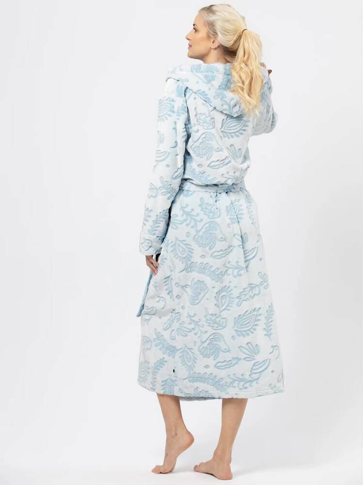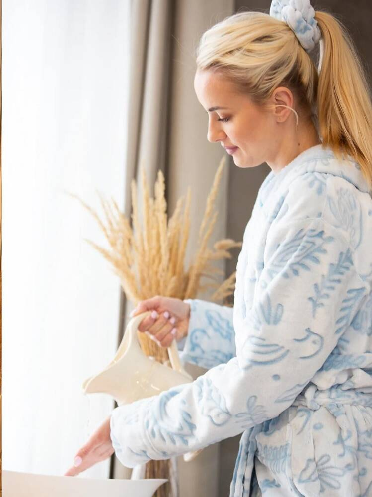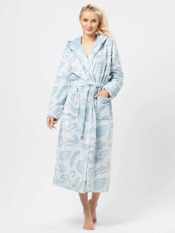 Дълъг дамски халат от мека материя, декориран с нежна шарка