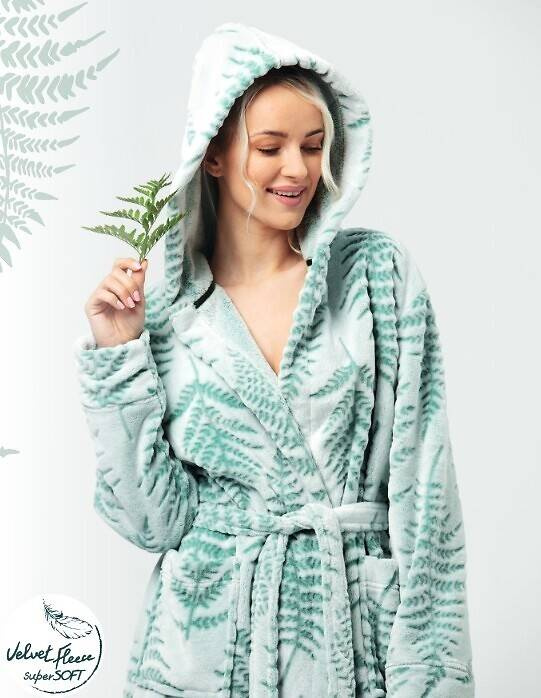 Дълъг дамски халат от мека материя, декориран с нежна шарка