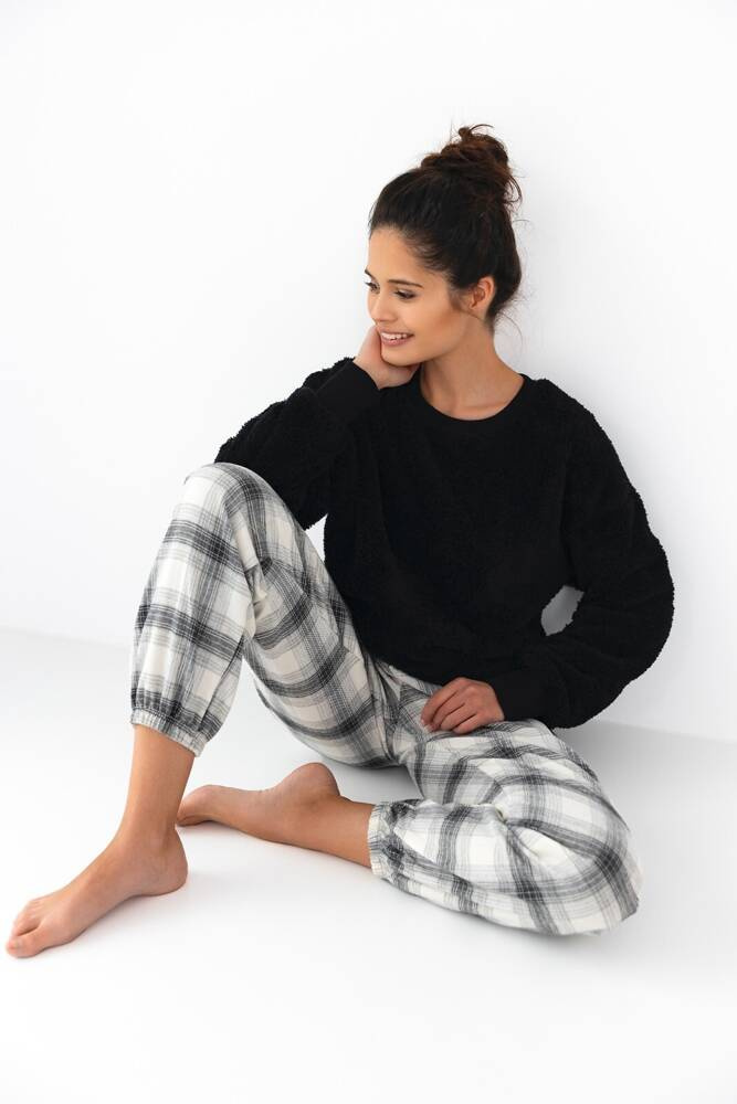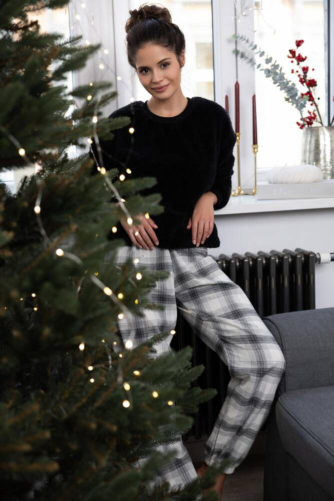 • Дамска пижама с дълъг ръкав, фланелени панталони, полски производител