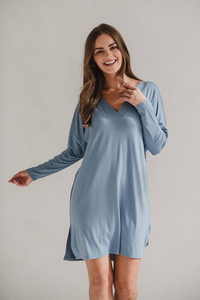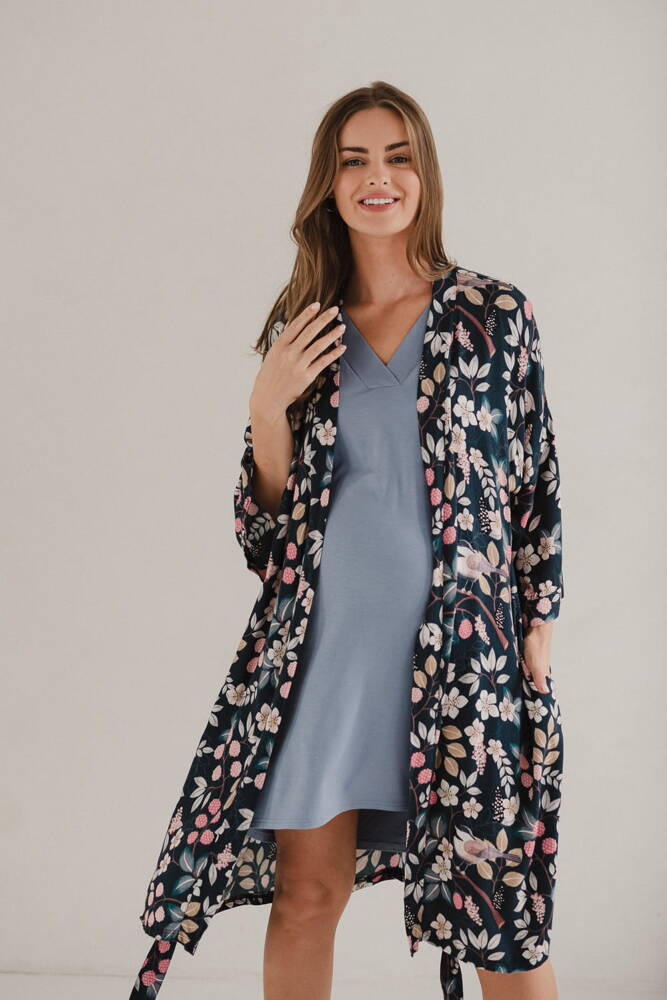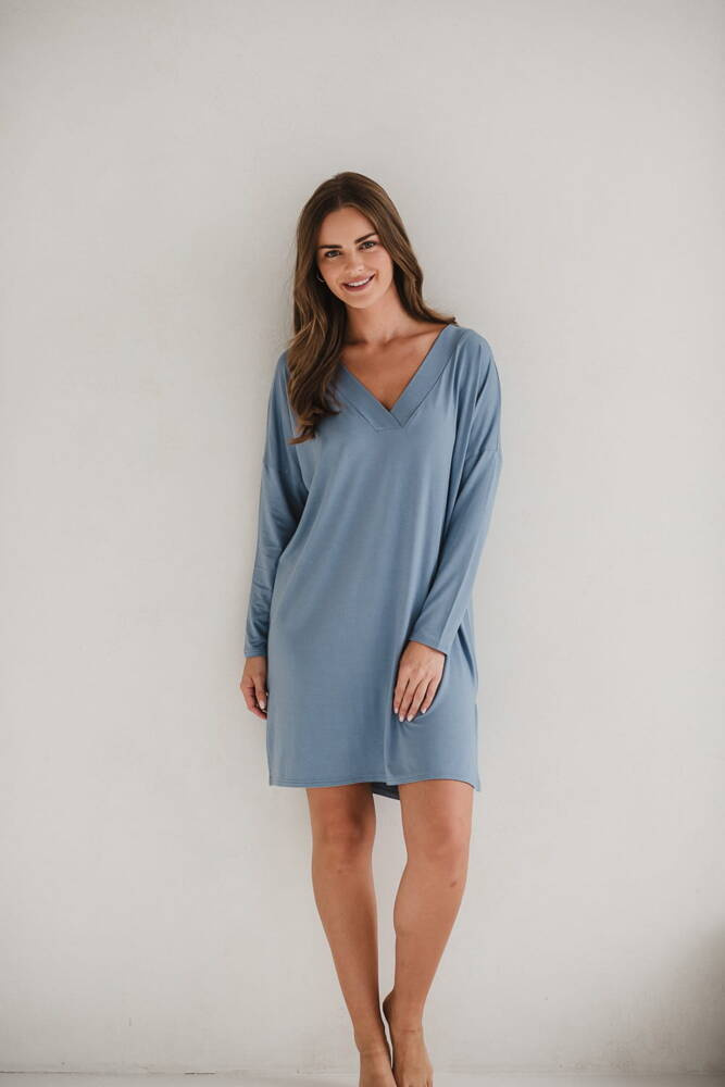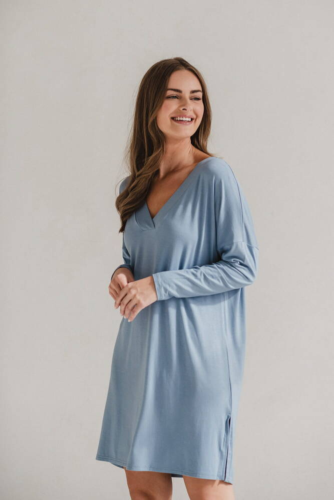 Нощница за бременни и кърмачки Moon bamboo, дълъг ръкав, Milk&Love, синя