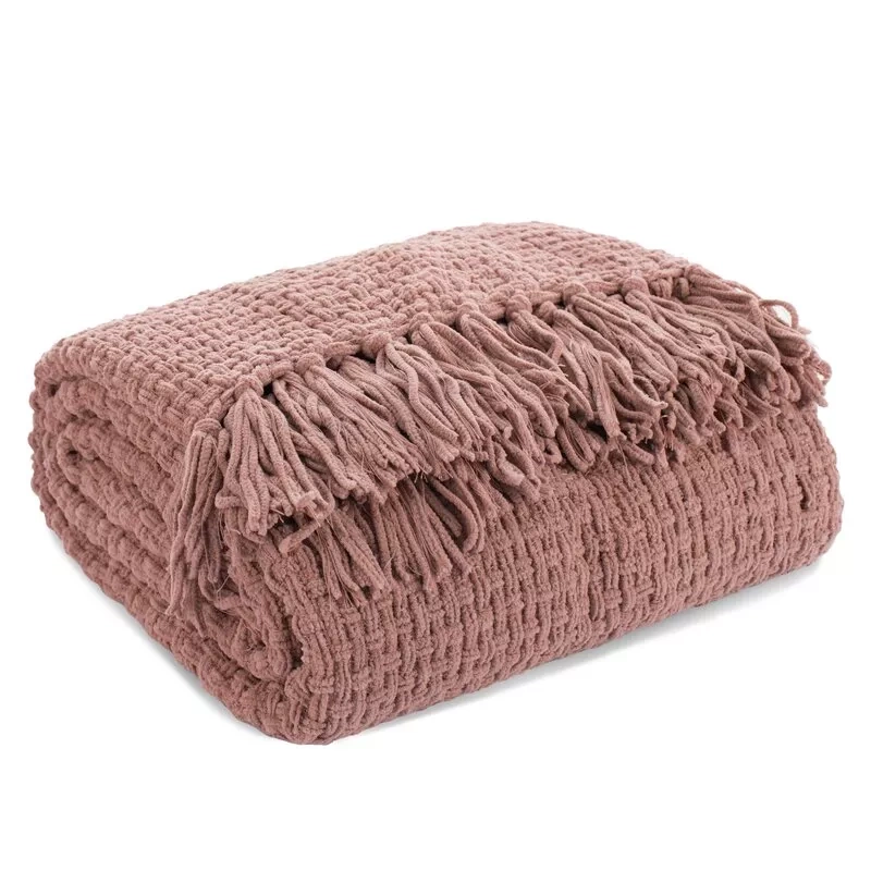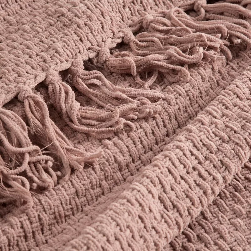 Сузи Одеяло, тъкано кувертюра с ресни, евро перде, пудра
