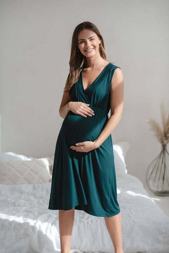 Нощница за бременни и кърмачки Star Light от бамбук Milk&Love, бутилковозелена