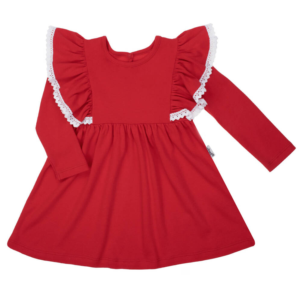 Запитване за продуктЧервена памучна рокля за момиче. Рокля с дълъг ръкав, декорирана с пеперуди. Закопчава се отзад с безникелова тиксо в т. нар. разкъсване. Продуктът притежава сертификат Oeko-Tex Standard 100 Trustworthy Textiles.