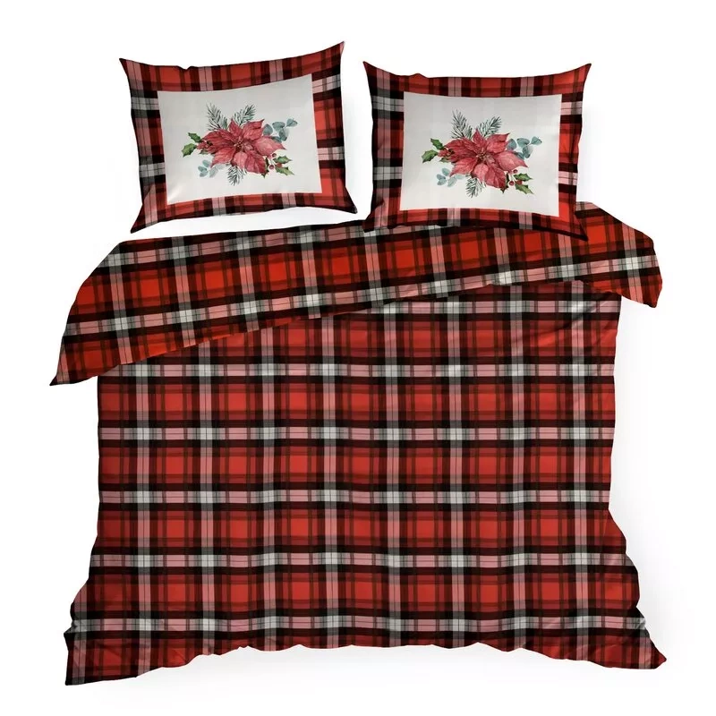 Коледно спално бельо Bliss, карирана Витлеемска звезда, европердета, червено