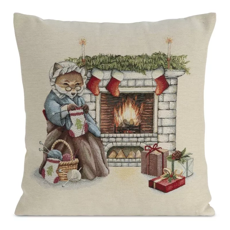 Chp 6136 Коледен гоблен Калъфка за възглавница, камина, европерде, бежово