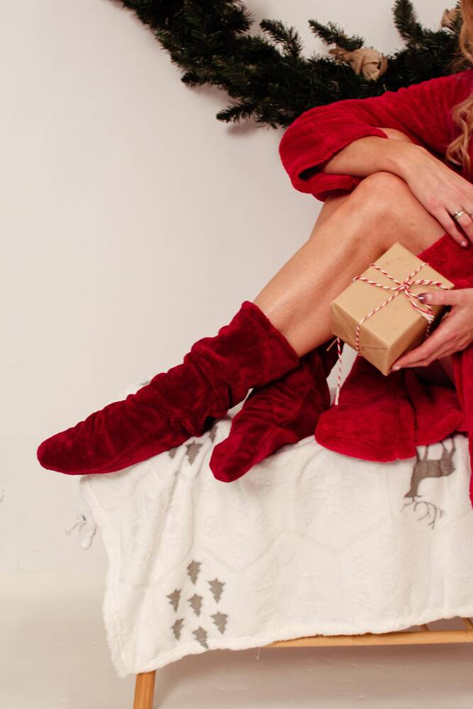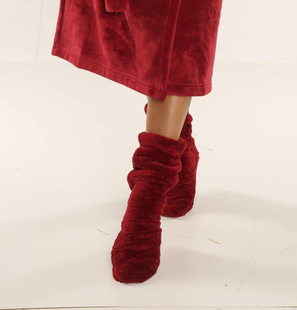 Топли меки плетени чорапи. Моделът се адаптира перфектно към формата на стъпалото, а материалът е изключително мек и лек. Да се увиете в него след къпане е удоволствие! Съчетава се перфектно с халата.