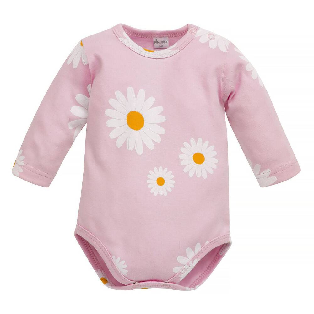 Бебешкото боди с дълъг ръкав от колекция Daisy е изработено от 100% мек памук декорирано с весела щампа на летни маргаритки. Деликатната обработка на чатала и ръкавите кара бебето да се чувства удобно в дрехите и същевременно да изглежда красиво. Бодито се закопчава на чатала и на лявото рамо с удобни копчета без никел. Това е практично решение, което улеснява обличането и преобличането на вашето бебе. Бебешките бодита са основен елемент от бебешкото бельо. Дрехите са произведени в Полша.