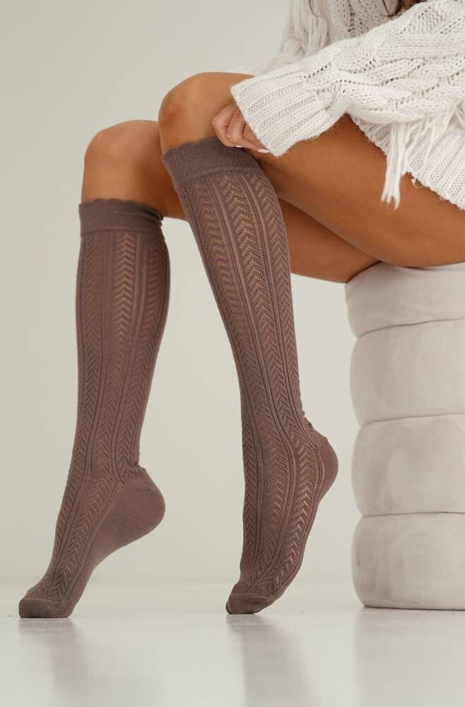 0330 Ажурни дамски чорапи до коляното Милена - капучино