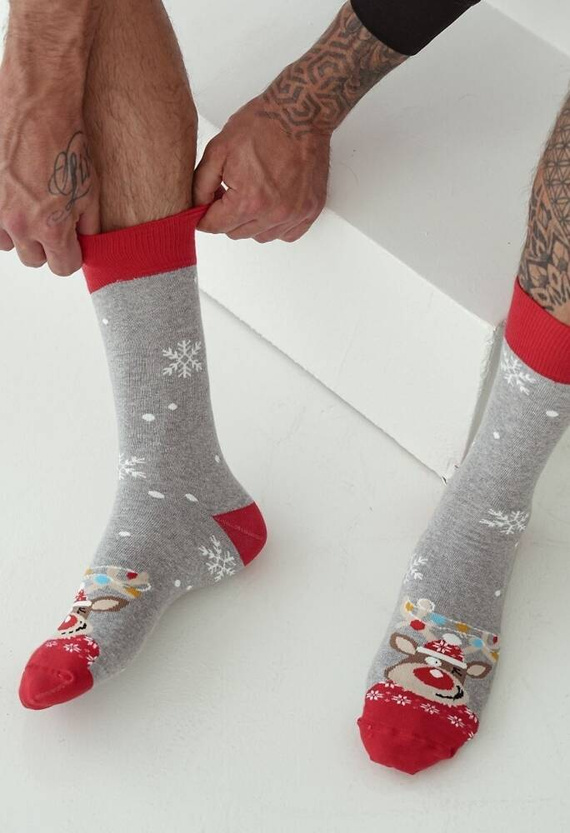 1290-017 Мъжки коледни чорапи Milena - сиви