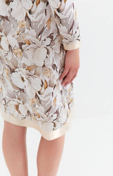 Дамска риза от висококачествен памук с флорален мотив. Изключително приятен за кожата. Ръкавите и долната част на тениската са гарнирани със сатен.
