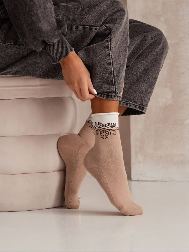0071-007 Снежинка Уникални дамски коледни чорапи Милена - бежови