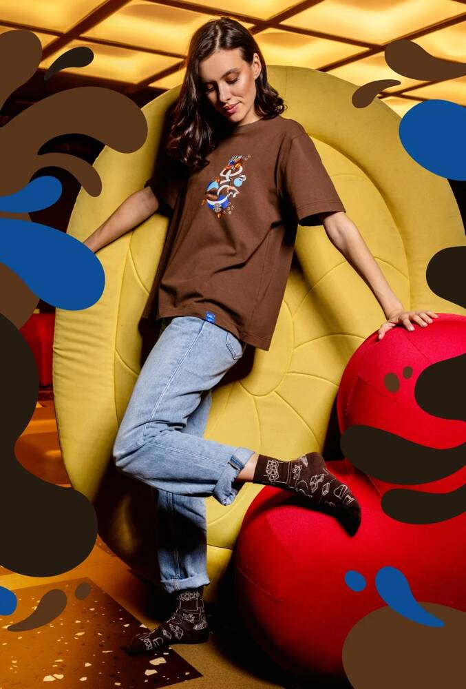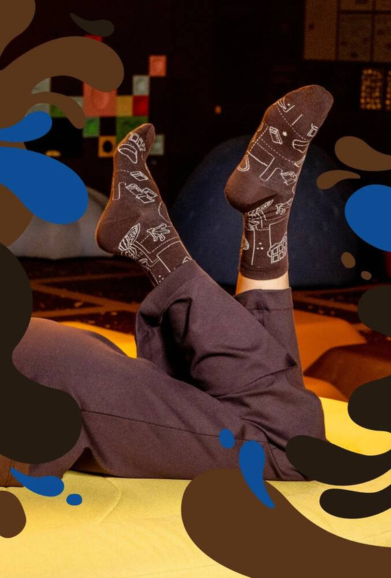 Унисекс чорапи от висококачествен памук с еластични влакна. Имат плоски шевове и удобен маншет. Моделът е декориран с шарки, вдъхновени от шоколад Wedel.