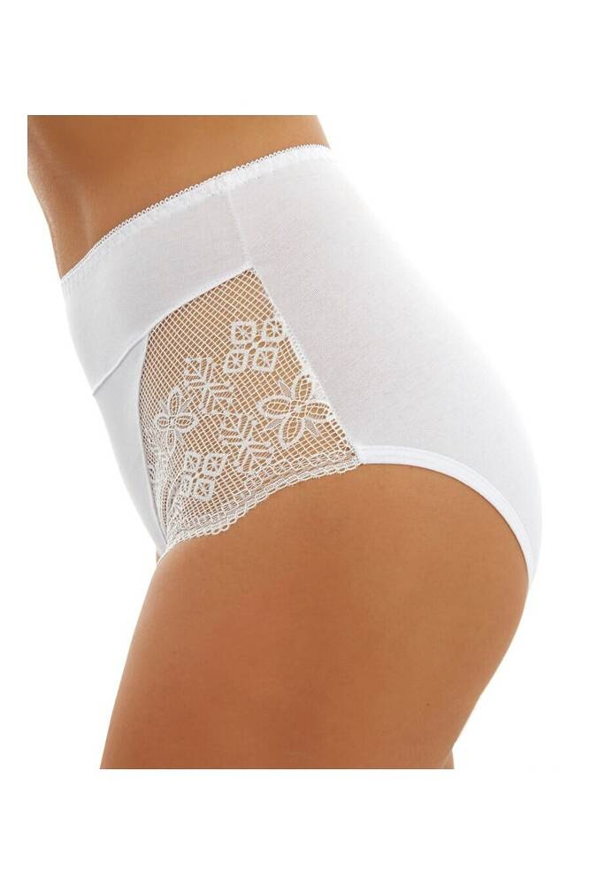 Затворени високи дамски бикини от гладък памук с добавка на ефектна дантела