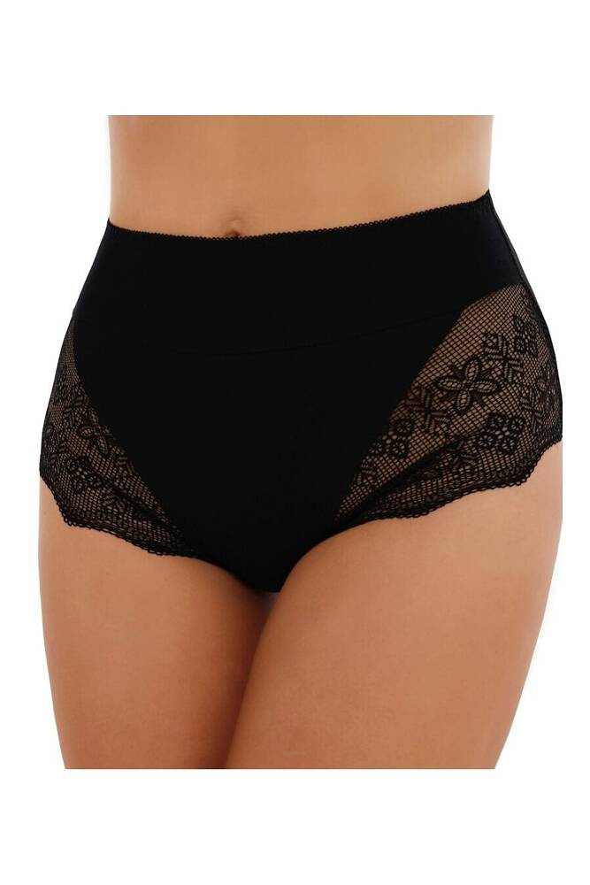 Затворени високи дамски бикини от гладък памук с добавка на ефектна дантела
