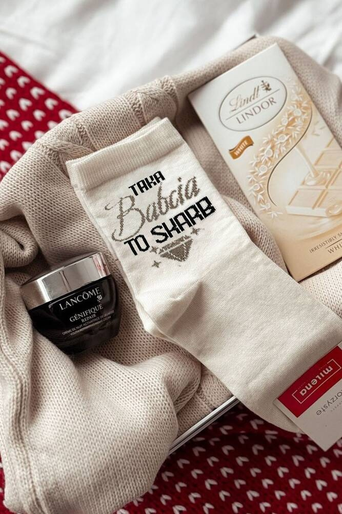 Skarpety damskie wykonane z wysokiej jakości bawełny z ozdobnym napisem z okazji "Dnia Babci"